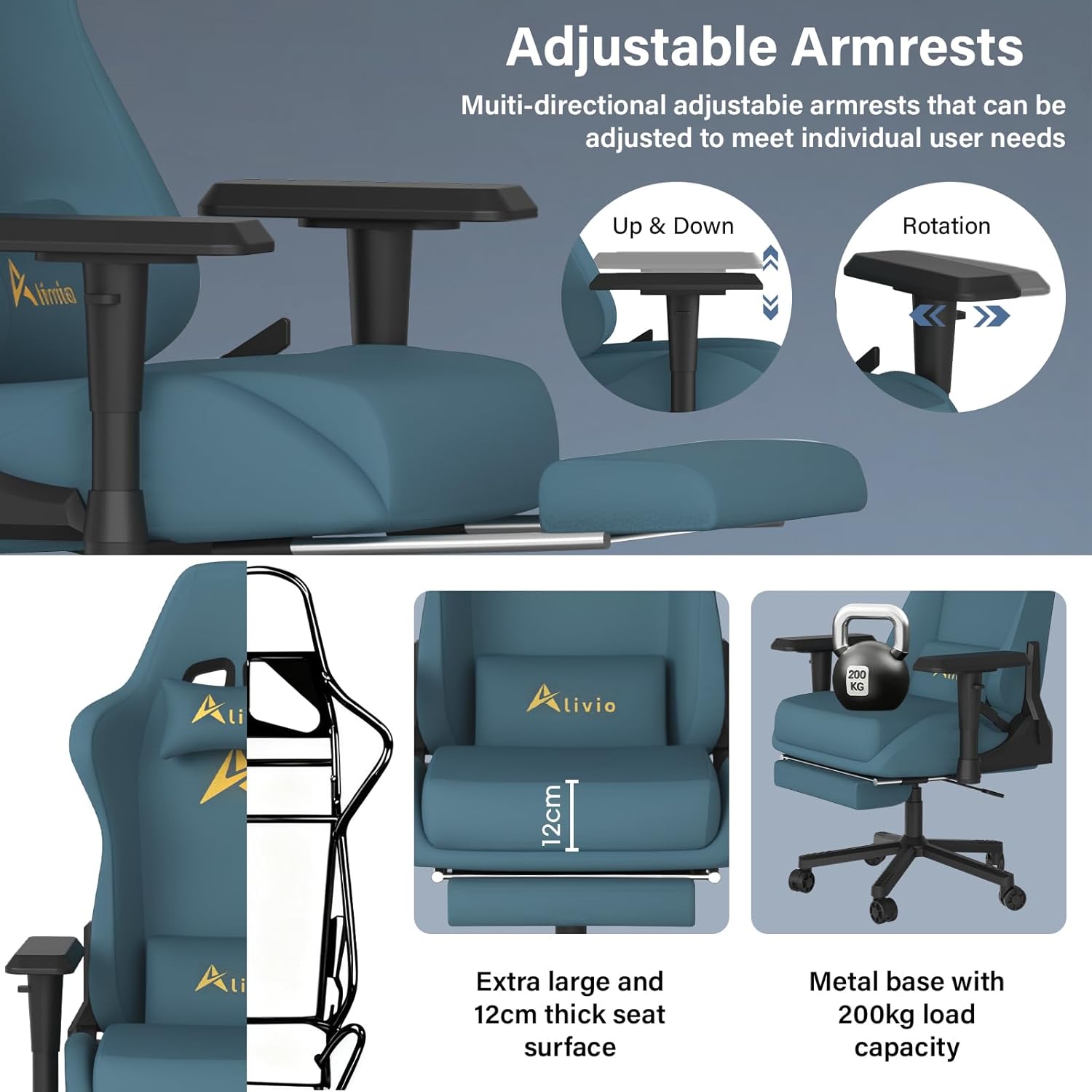 Crafted with high-quality breathable fabric, this blue gaming chair ensures better airflow, keeping you cool during intense gaming marathons or long office hours.