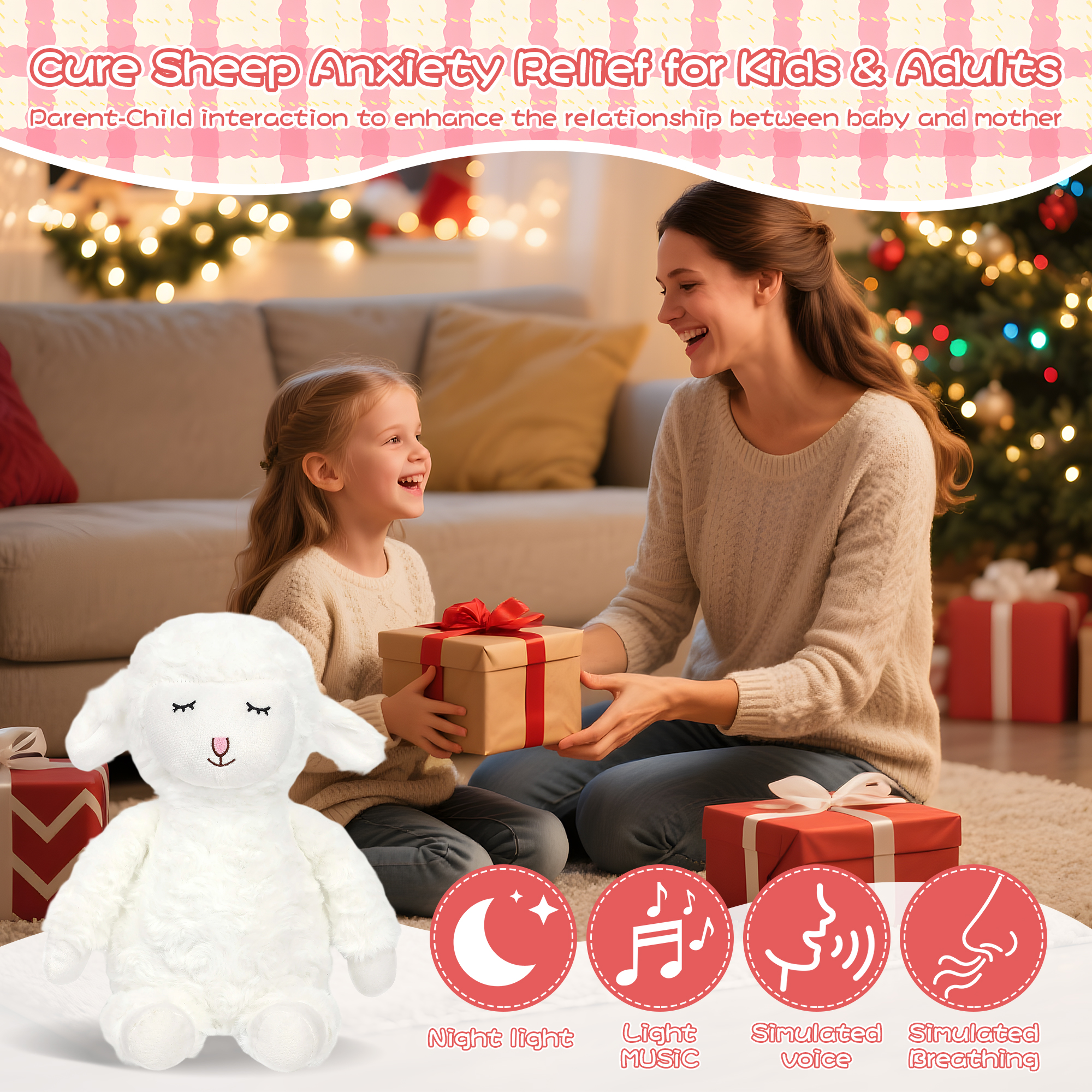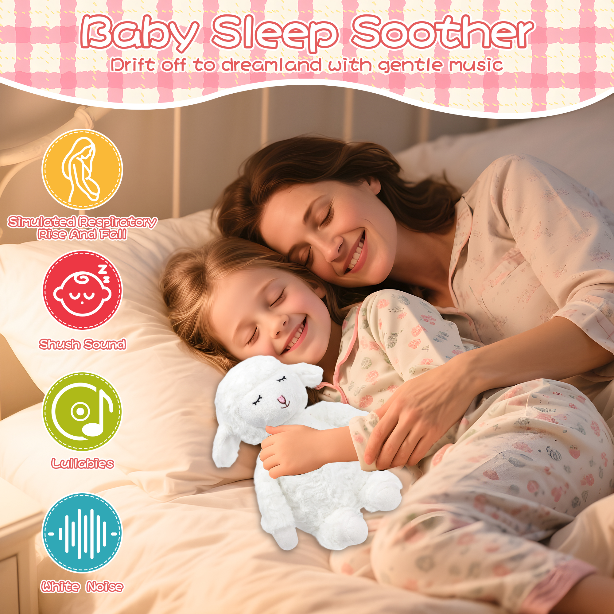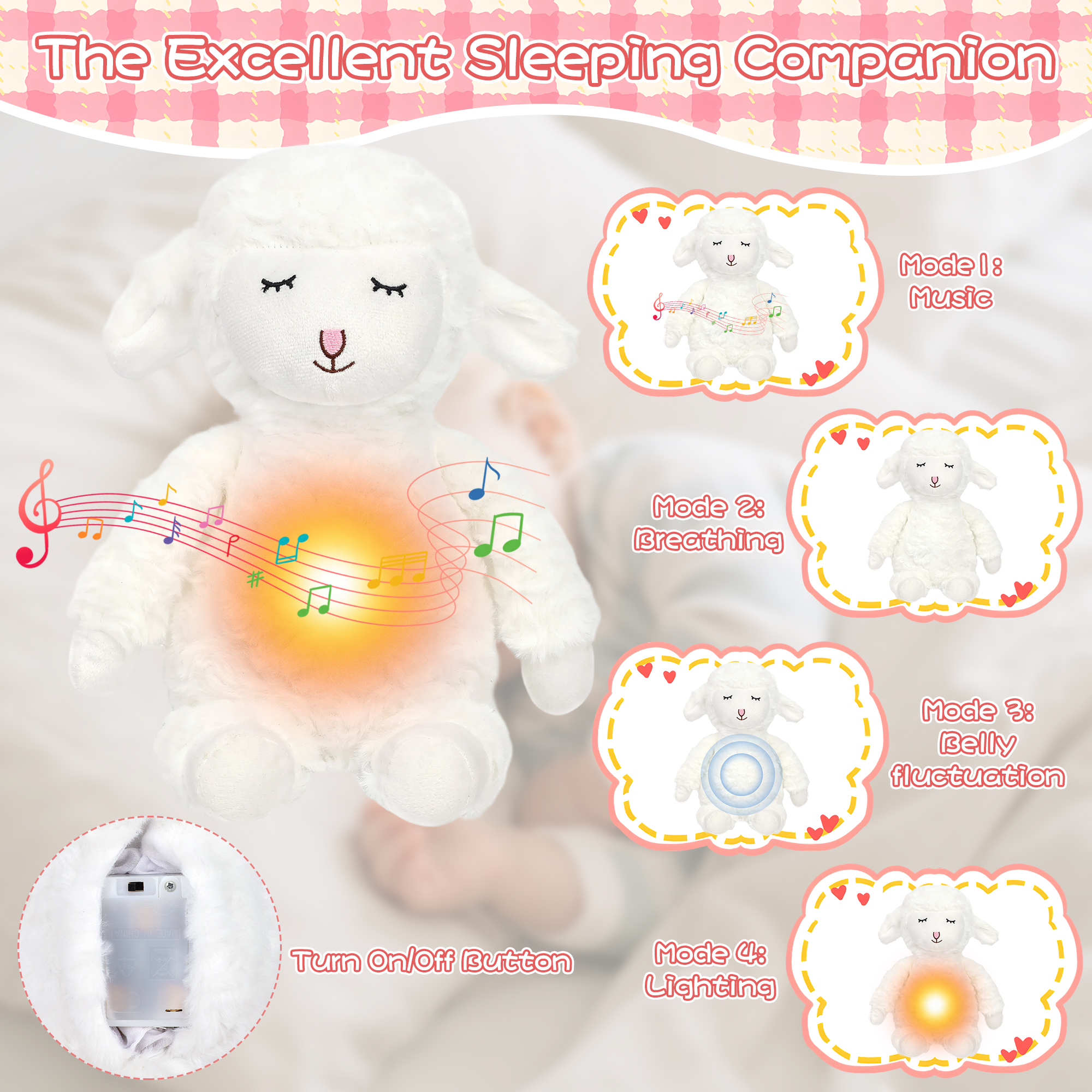 Alivio Singing Music Sheep – Baby Sleep Soother Plush Toy, 4 Modes Music, Breathing, Belly Fluctuation & Warm Light, Ultra Soft Cuddly Sheep for Newborns & Toddlers (White)