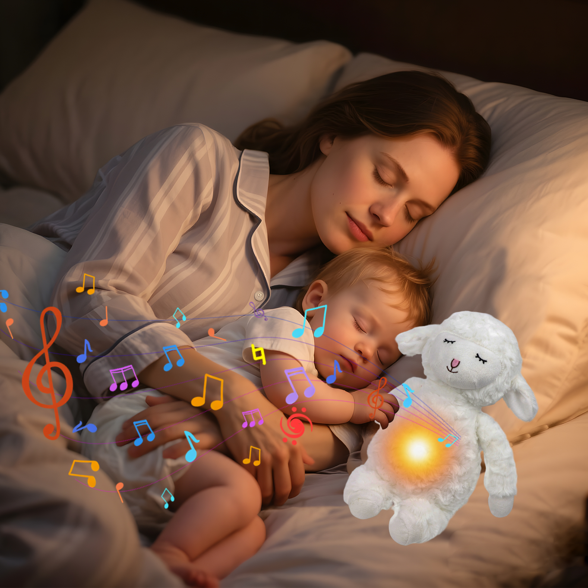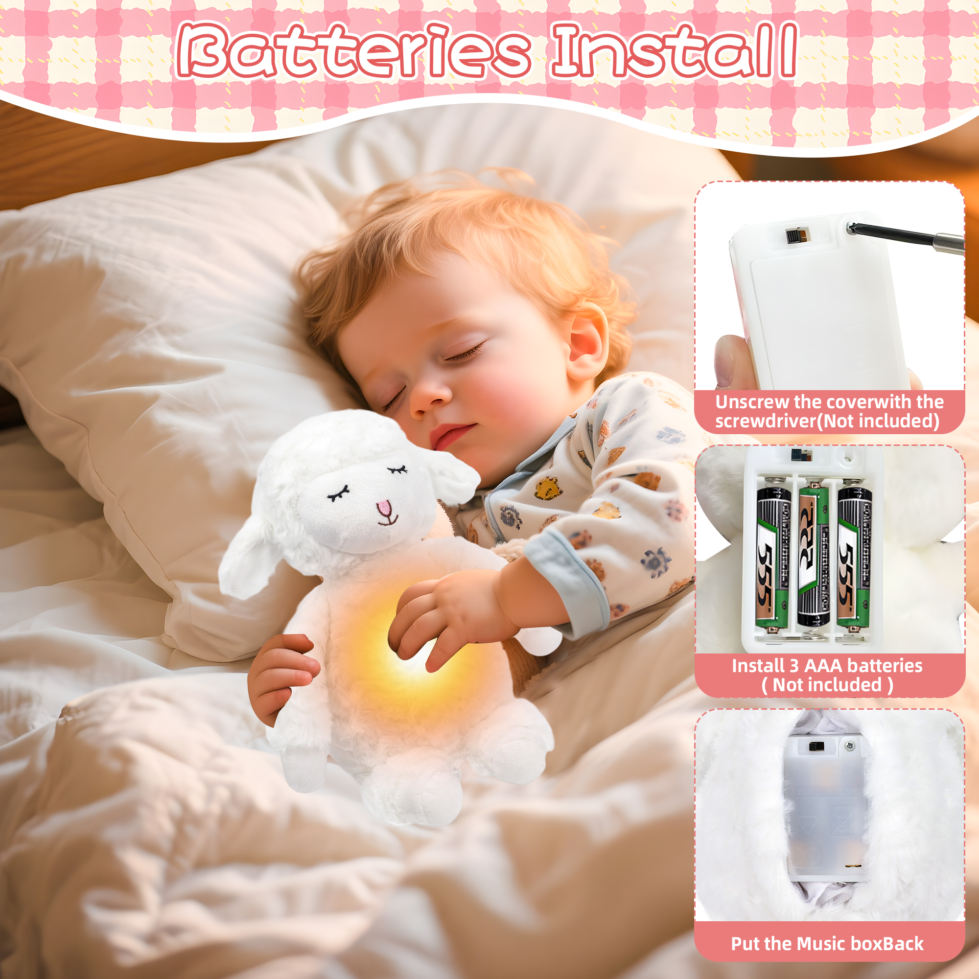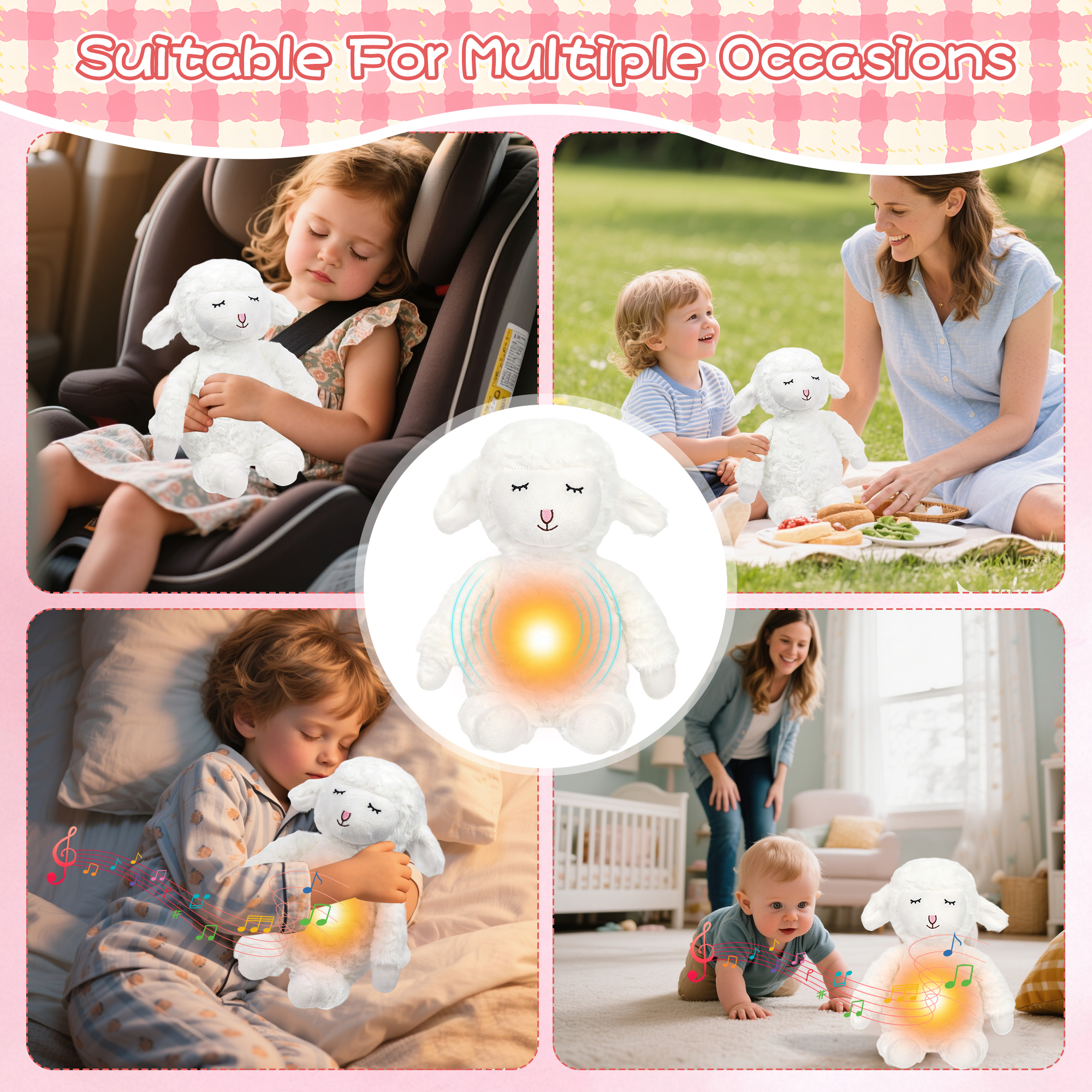 Alivio Singing Music Sheep – Baby Sleep Soother Plush Toy, 4 Modes Music, Breathing, Belly Fluctuation & Warm Light, Ultra Soft Cuddly Sheep for Newborns & Toddlers (White)