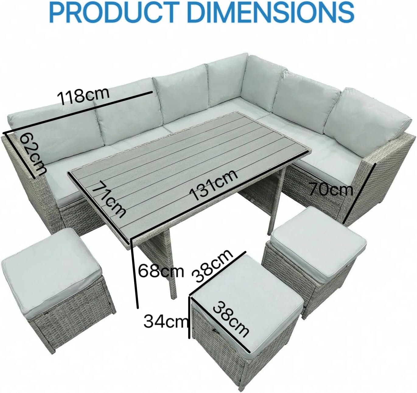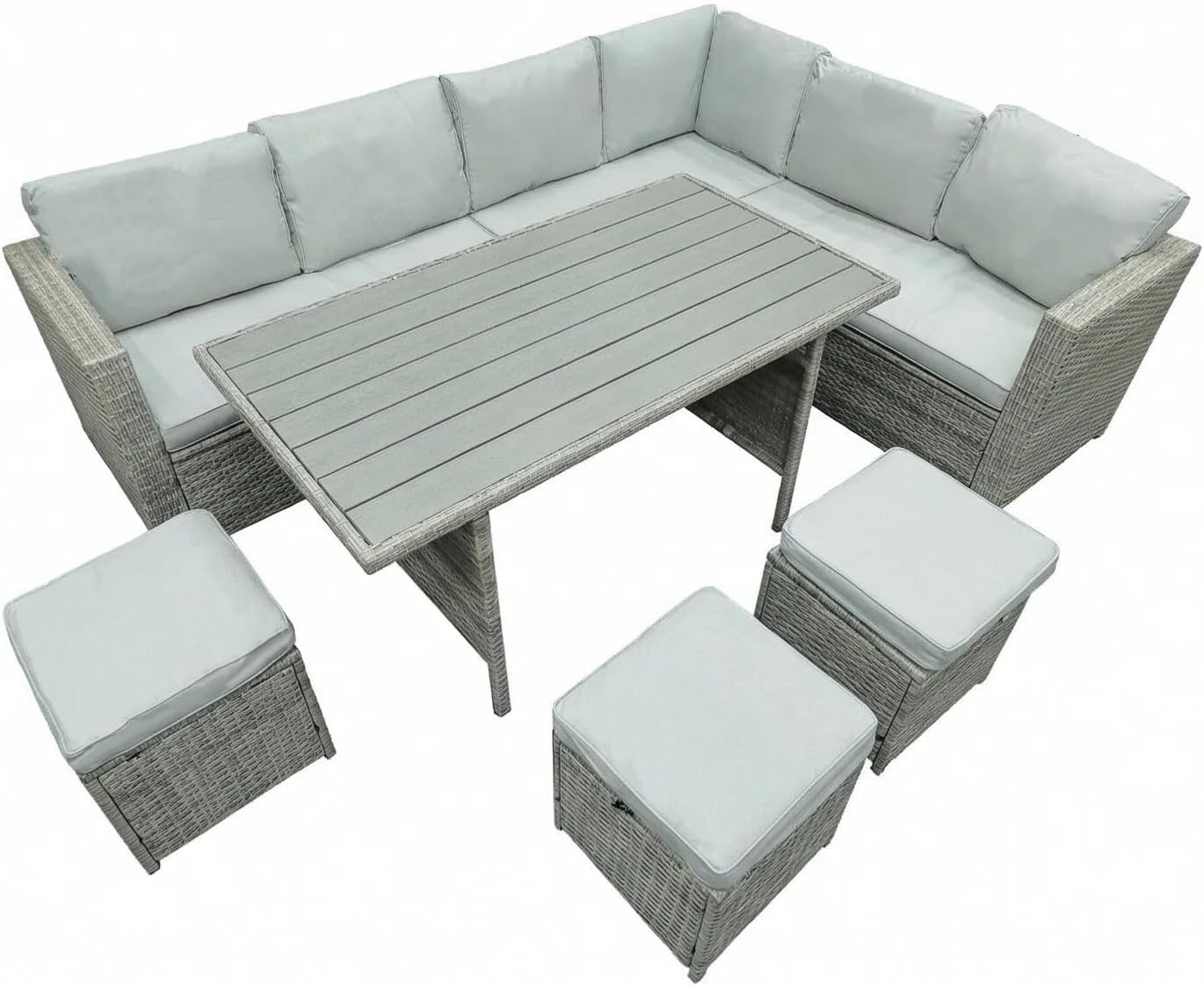 - Spacious 10-Seater Design: This patio furniture set comfortably accommodates up to 10 people, making it ideal for outdoor gatherings, family meals, parties, or relaxing with friends.