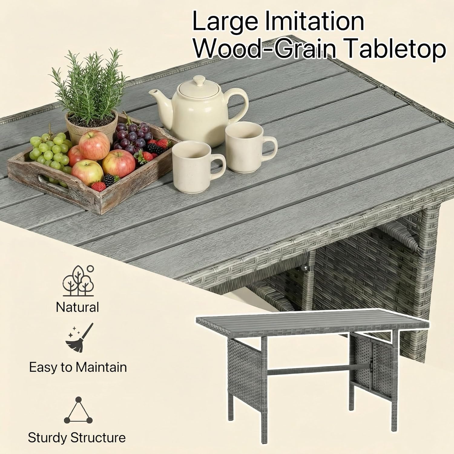 - Multi-Functional Dining Table: The spacious rectangular table is perfect for serving meals, drinks, snacks, or decorative items, making it suitable for both dining and casual outdoor use.