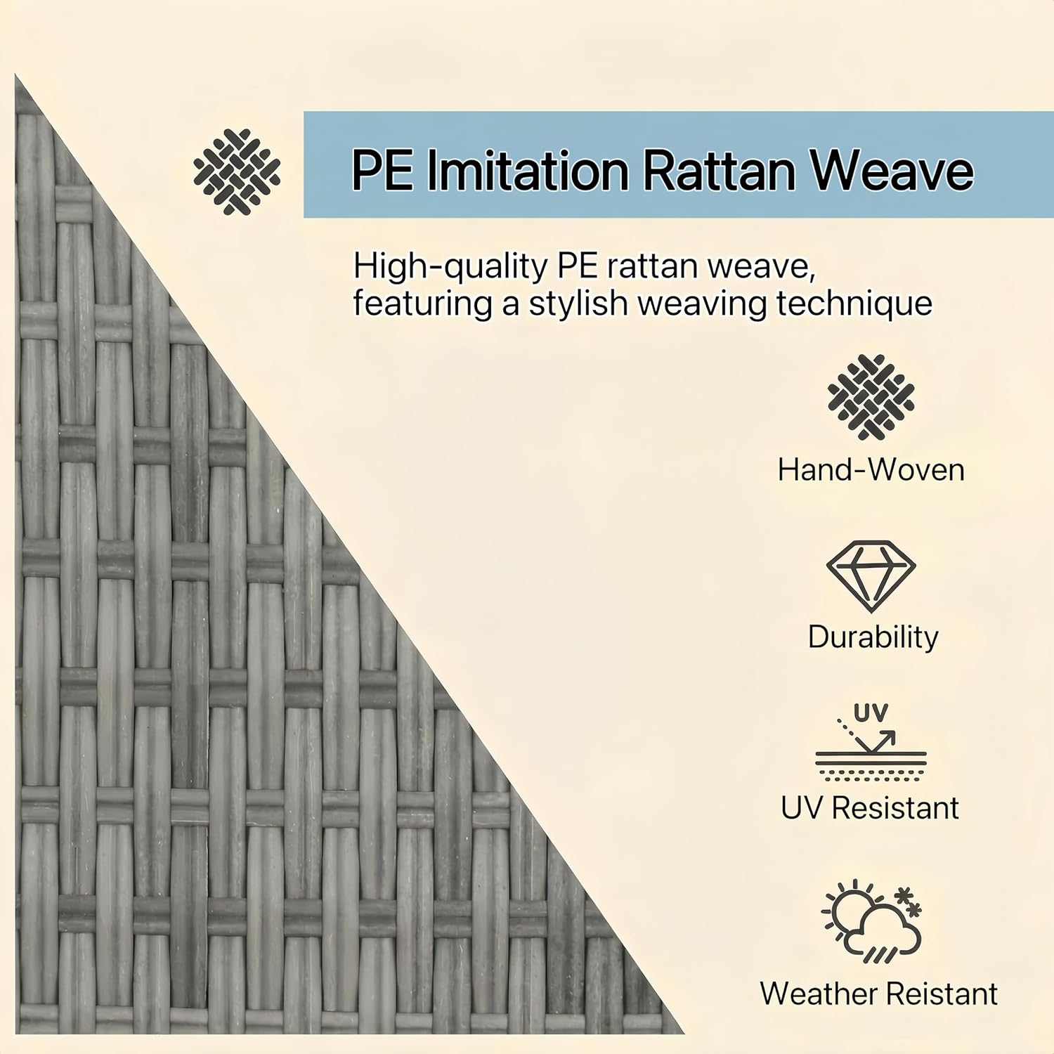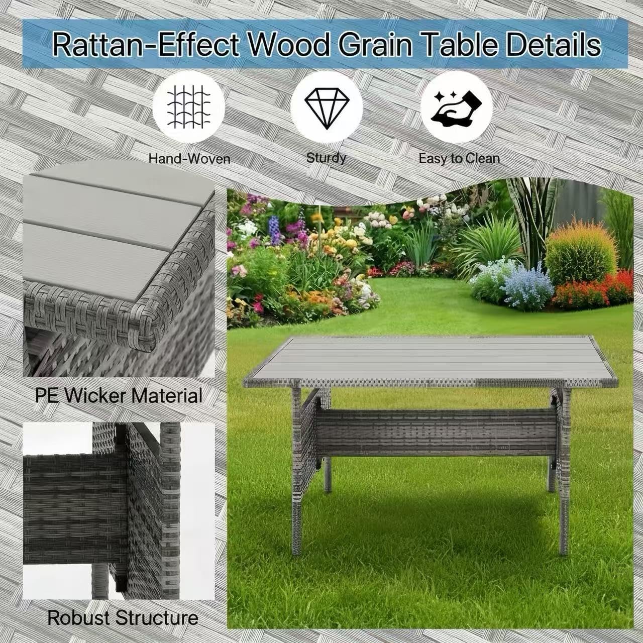 - Durable PE Rattan Construction: Made with premium weather-resistant PE rattan, the furniture offers excellent durability and resistance against sun, moisture, and daily outdoor use.