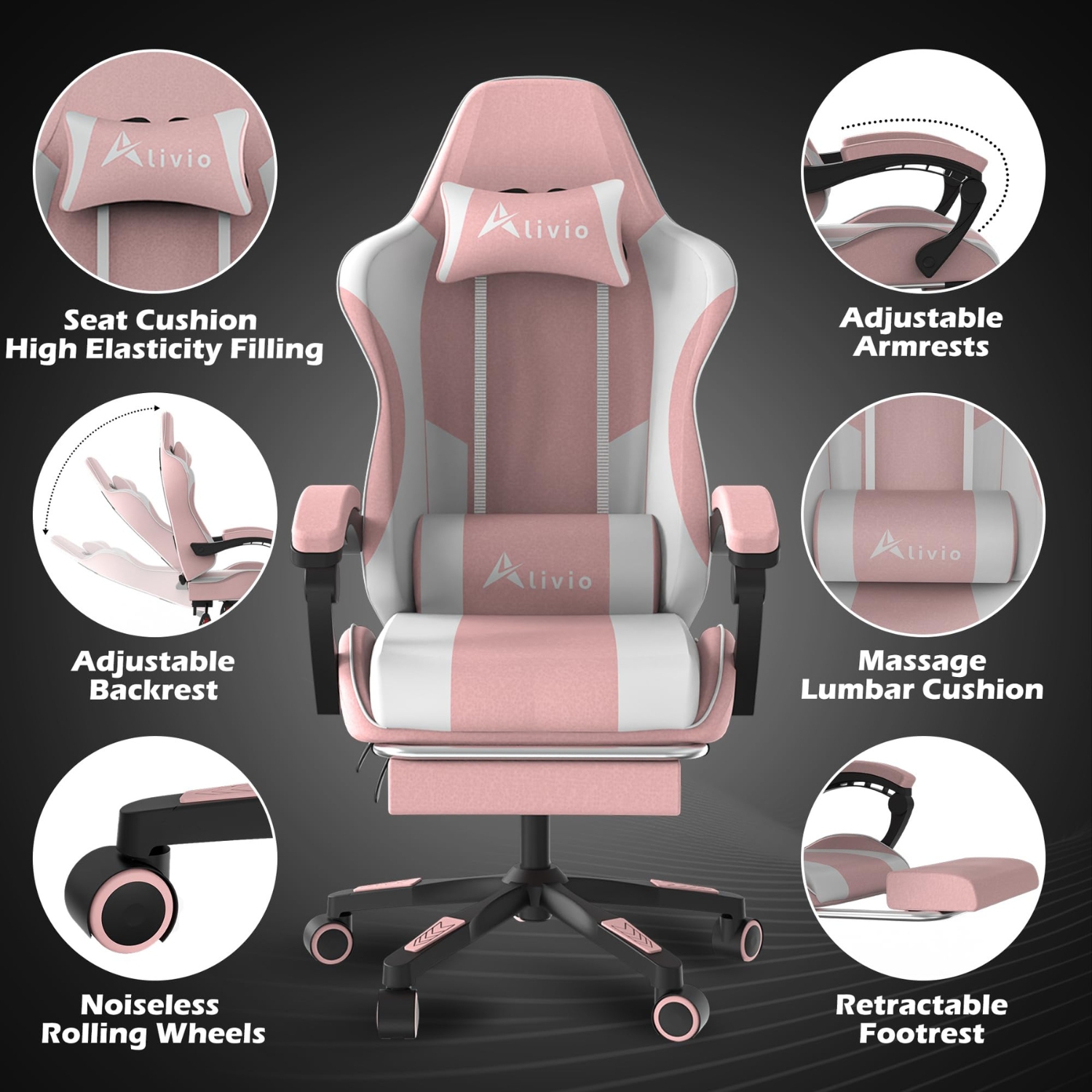 Alivio Ergonomic Gaming Chair with Massage Lumbar Cushion & Retractable Footrest, 360° Recline & Swivel Breathable Leather Office Massage Chair, PU Leather Video Game Chair (Pink)