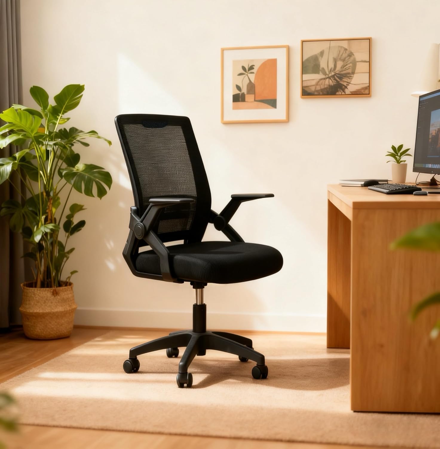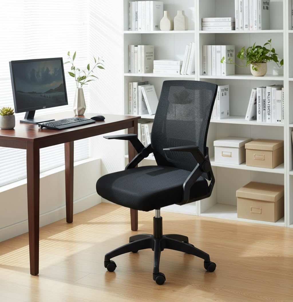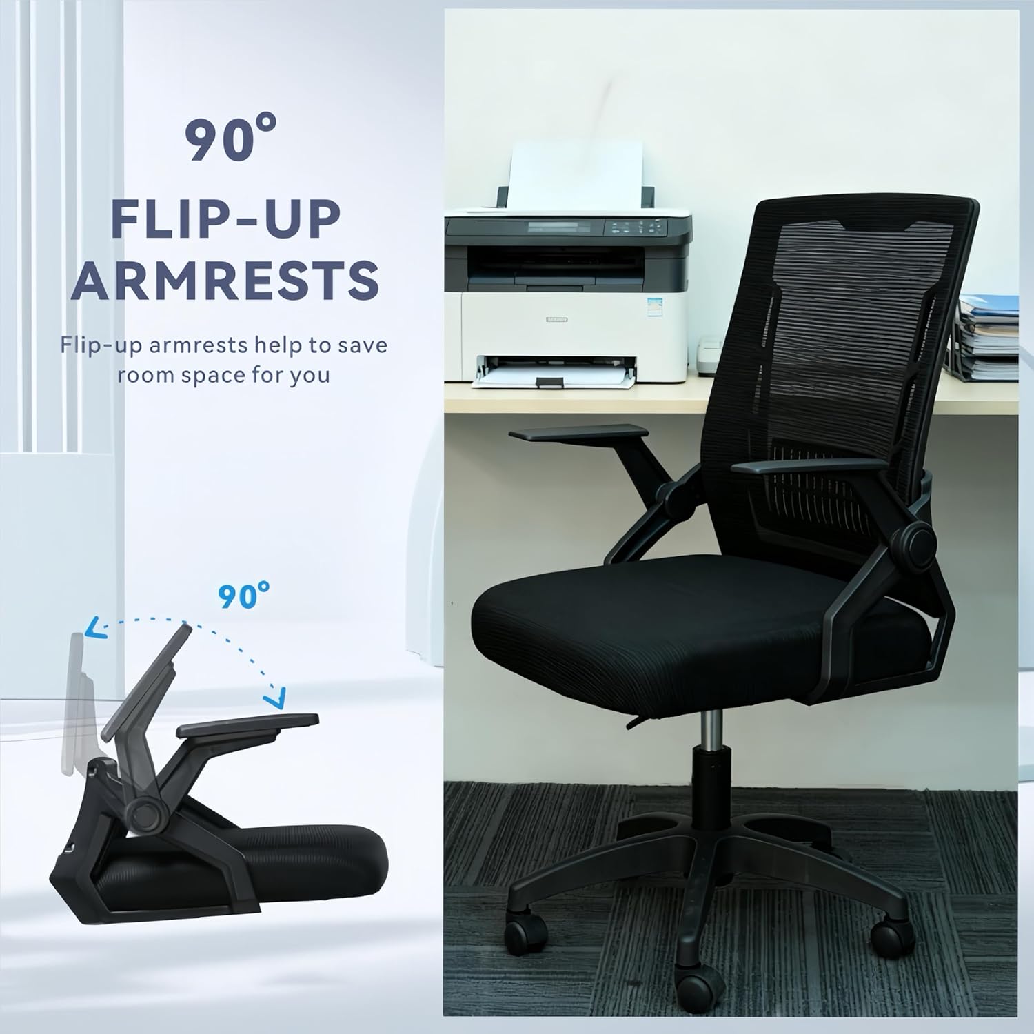- 90° Flip-Up Armrests: Switch between armrest support or a spacious, armless setup. Easily tuck the chair under desks to save floor space.