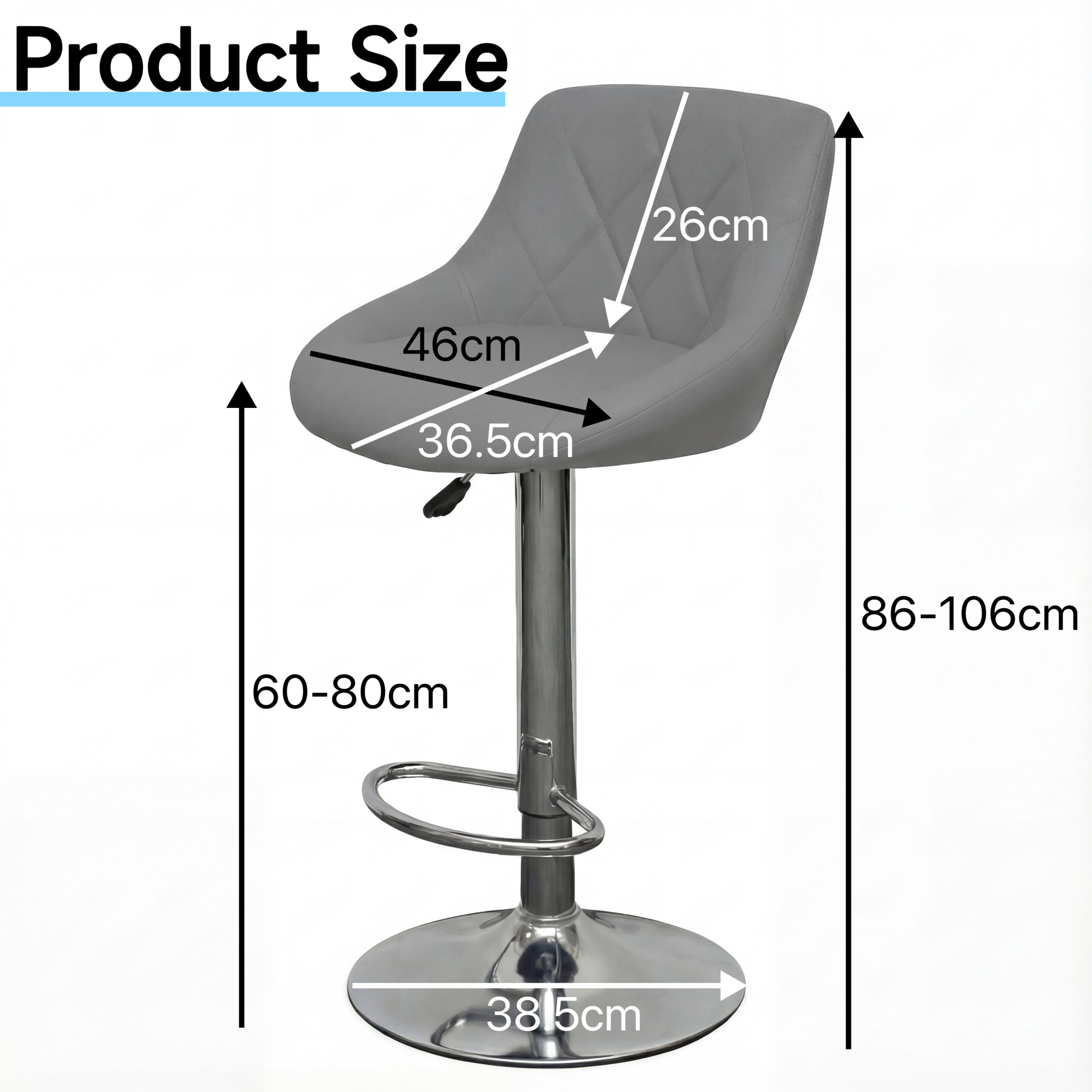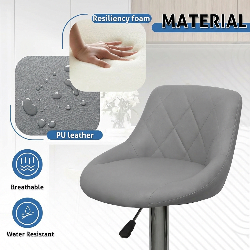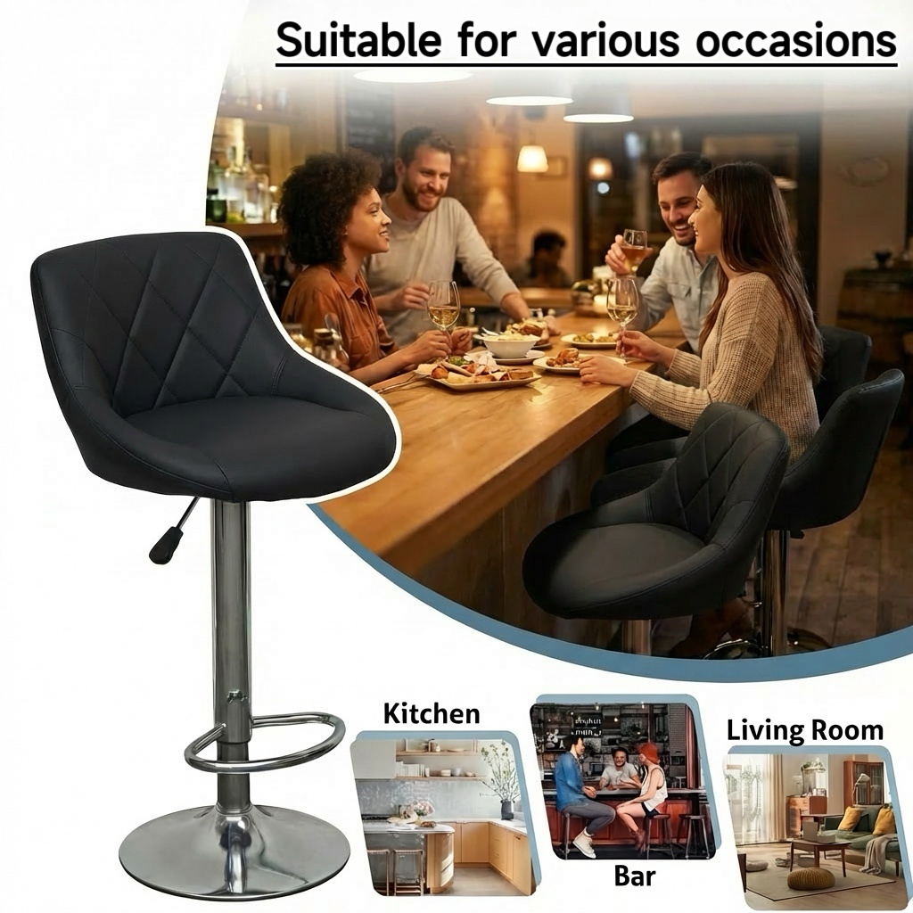 - Adjustable Height: Easily adjust the height of the bar stools using the gas lift mechanism. This feature provides convenience and allows you to find the perfect seating height.