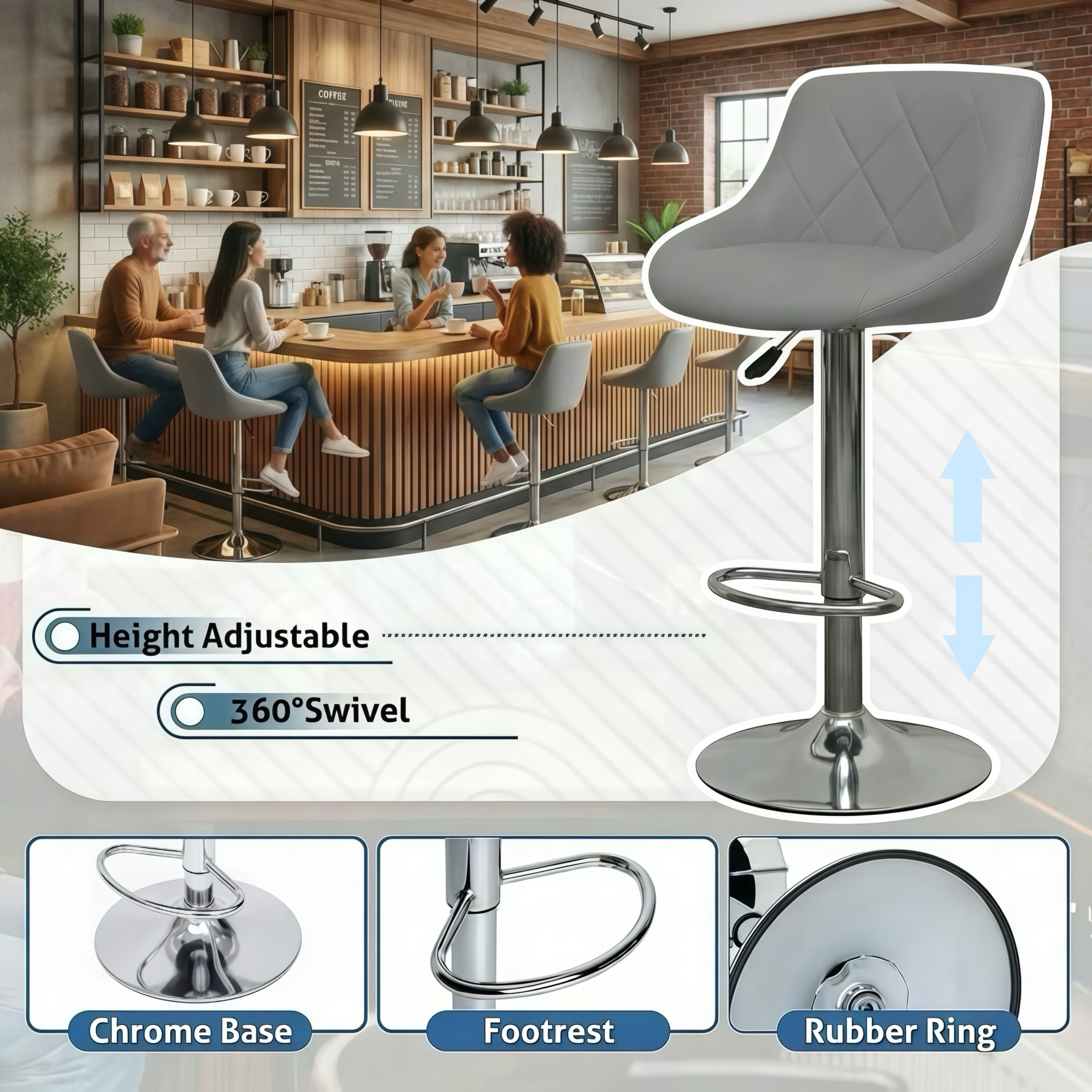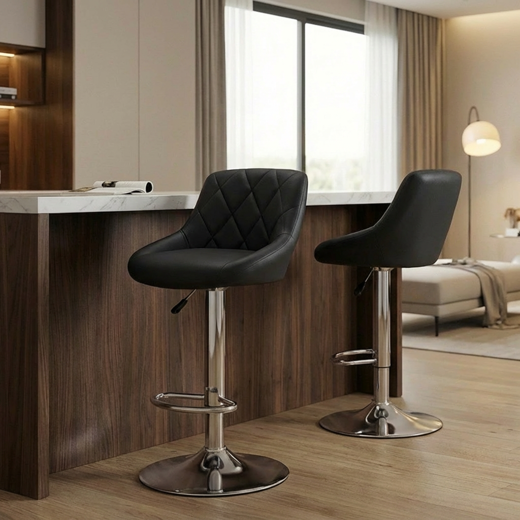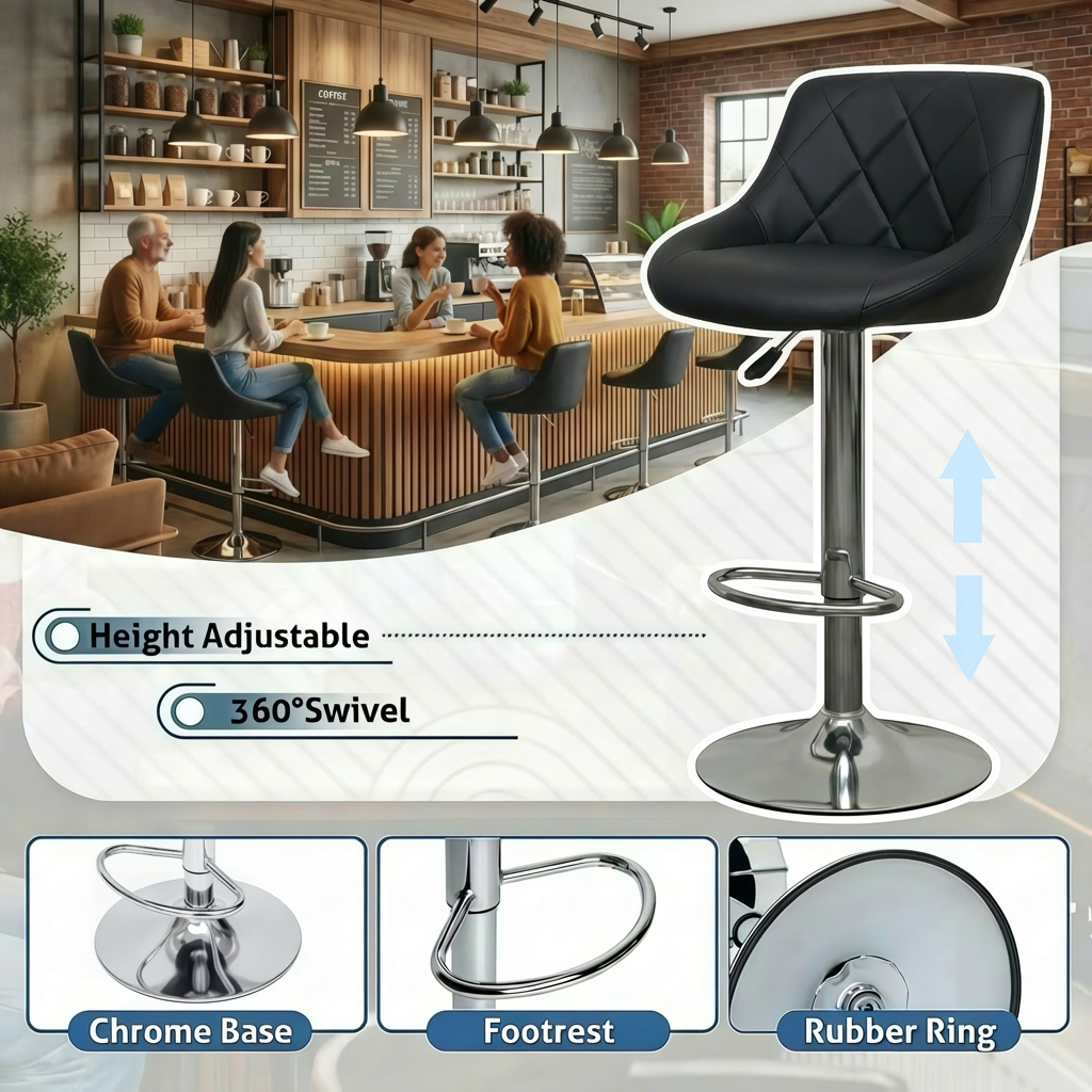 - High-Quality Construction: Crafted with a strong chromed steel base and footrest, along with a chrome-plated frame, these bar stools are built for durability and long-lasting use.