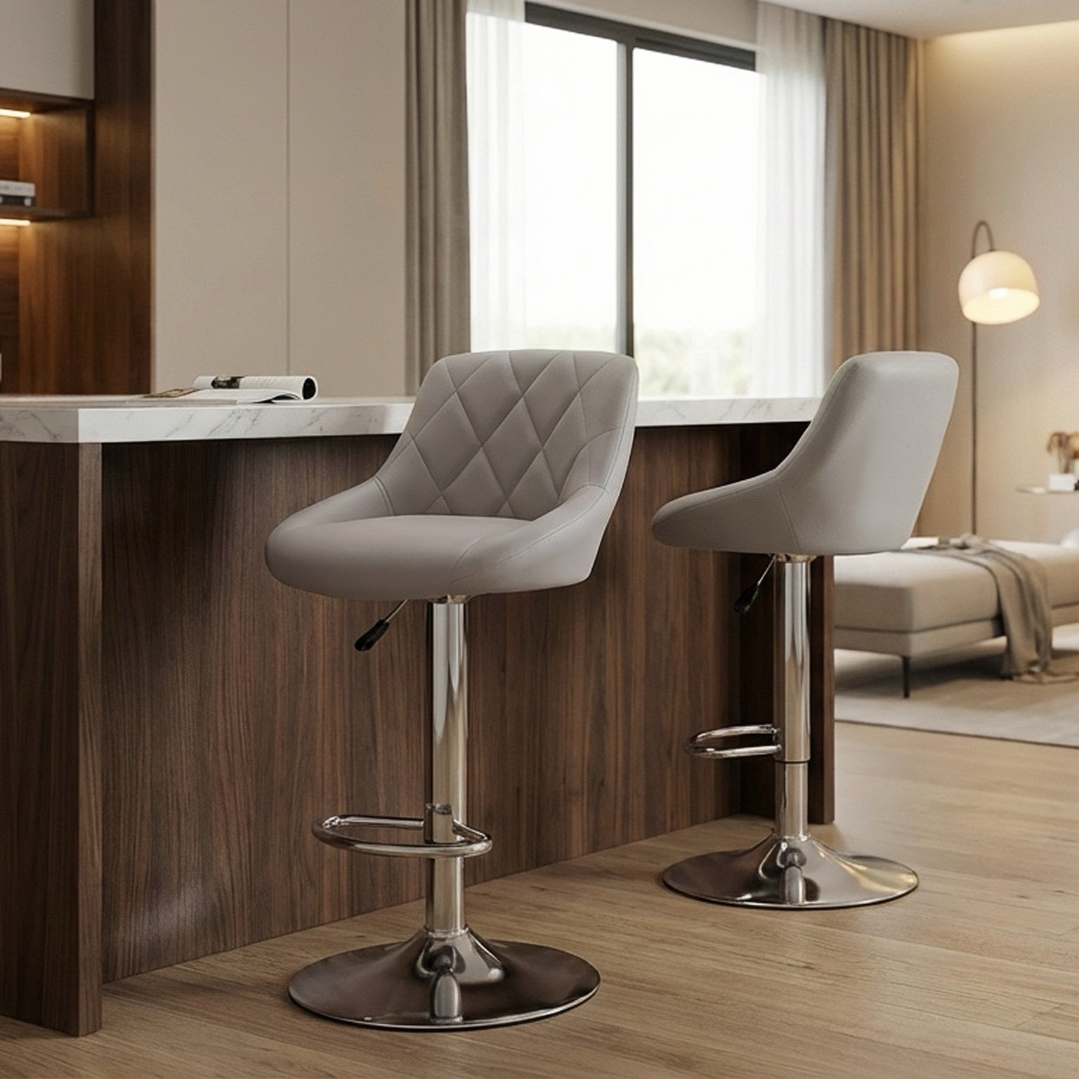 - Sleek and Chic Design: Elevate your home’s style with the Alivio Luxury Chrome Bar Stools. These bar stools boast a sleek and chic design that adds a touch of sophistication to your space.