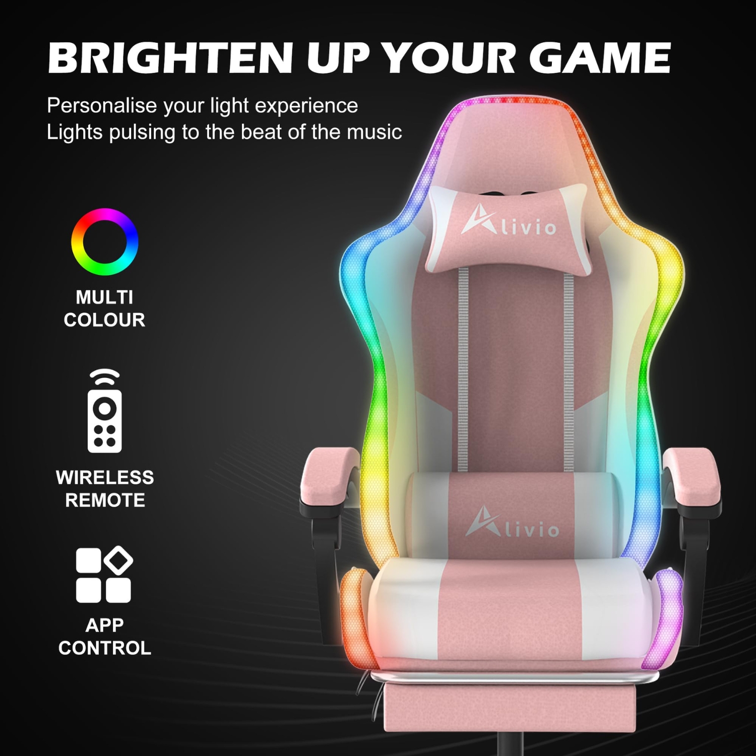 Alivio Wireless App Control LED Gaming Chair with Massage Lumbar Cushion & Retractable Footrest, 360° Recline & Swivel Breathable Leather Office Massage Chair, PU Leather Video Game Chair (Pink)