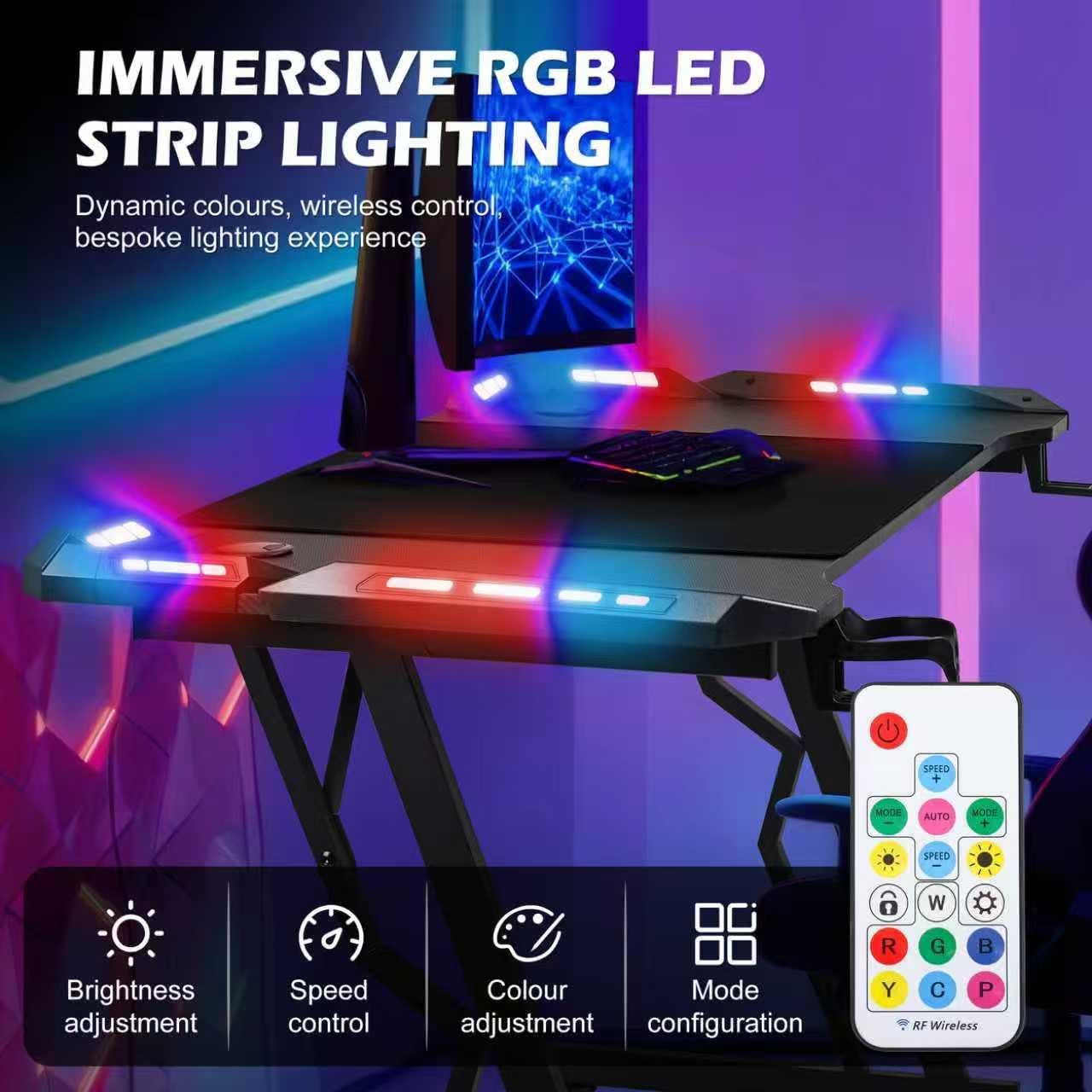 Ergonomic LED Gaming Desk with Wireless Lighting